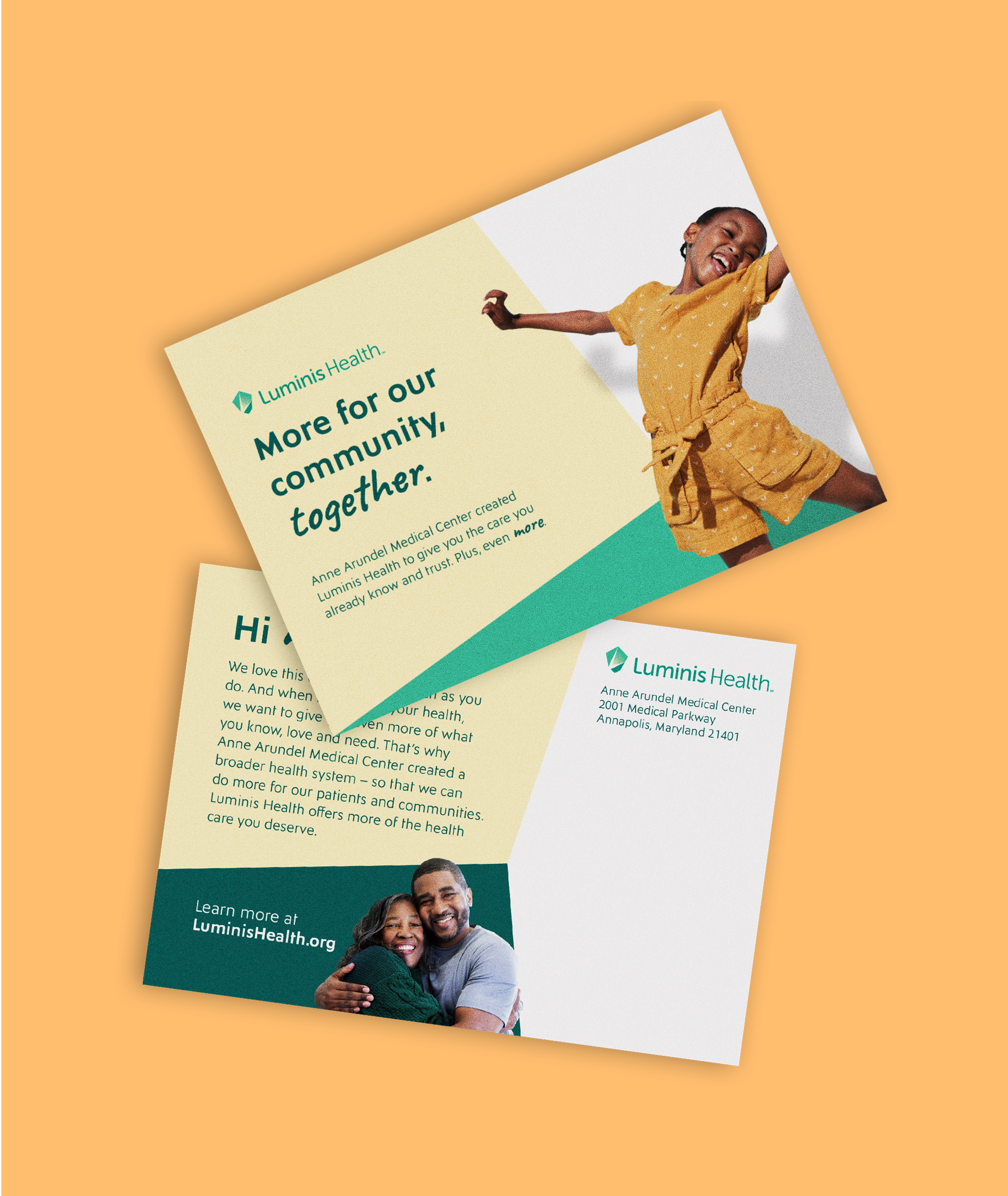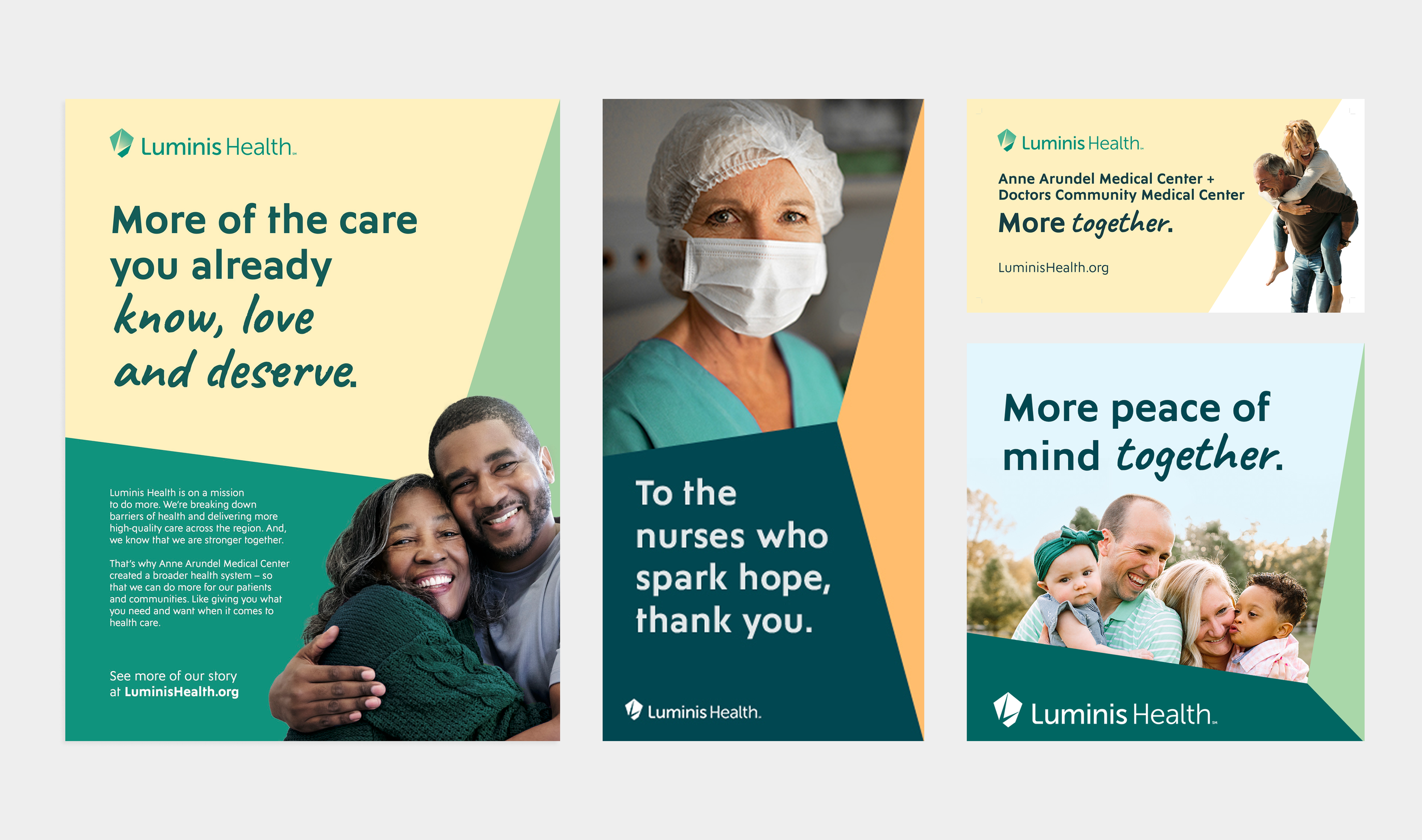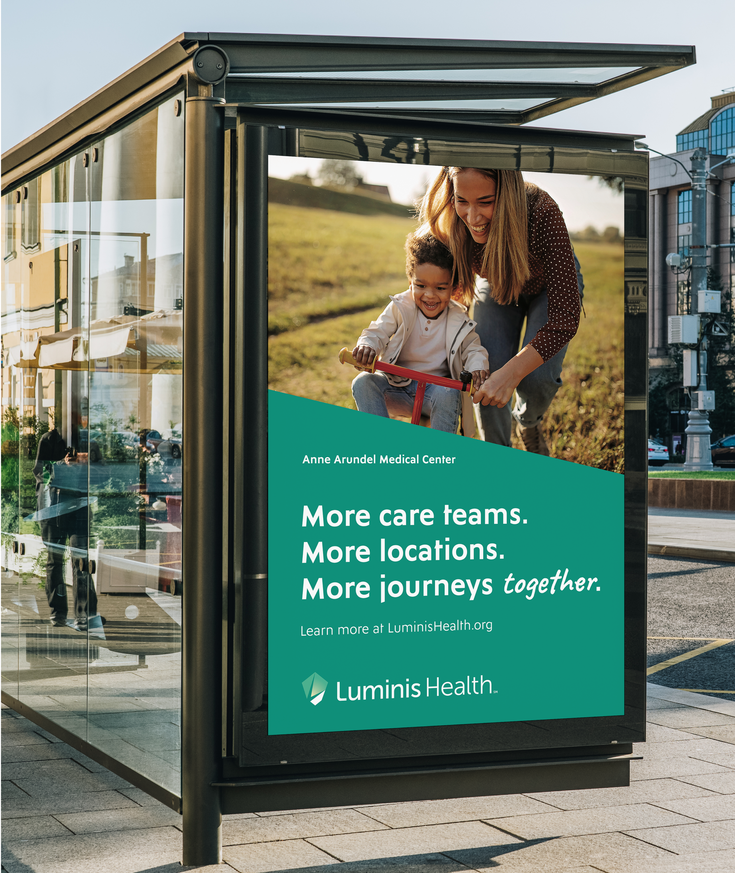 The new Luminis Health brand needed a campaign that could introduce the merged health system in a clear, trustworthy, and memorable way. The work had to communicate unity while also functioning across a wide range of formats, from large-scale outdoor placements to smaller digital and print pieces.