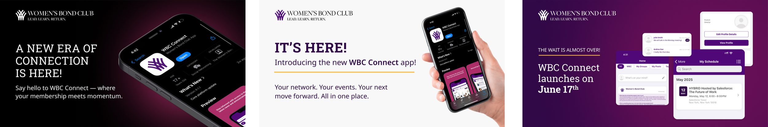 WBC Connect is a Women’s Bond Club initiative centered around building connection and community through a cohesive digital experience.